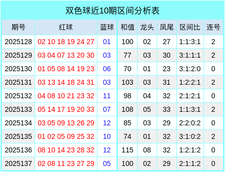 红球连码分析:上期红球未开出连号组合,在最近10期开奖中,有5期奖号包含了连码组合,连码的出现率较低。预计本期不会出现连号。