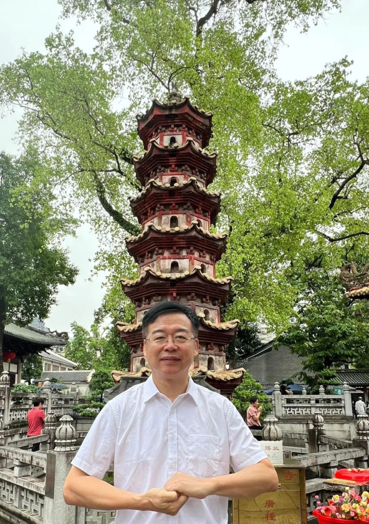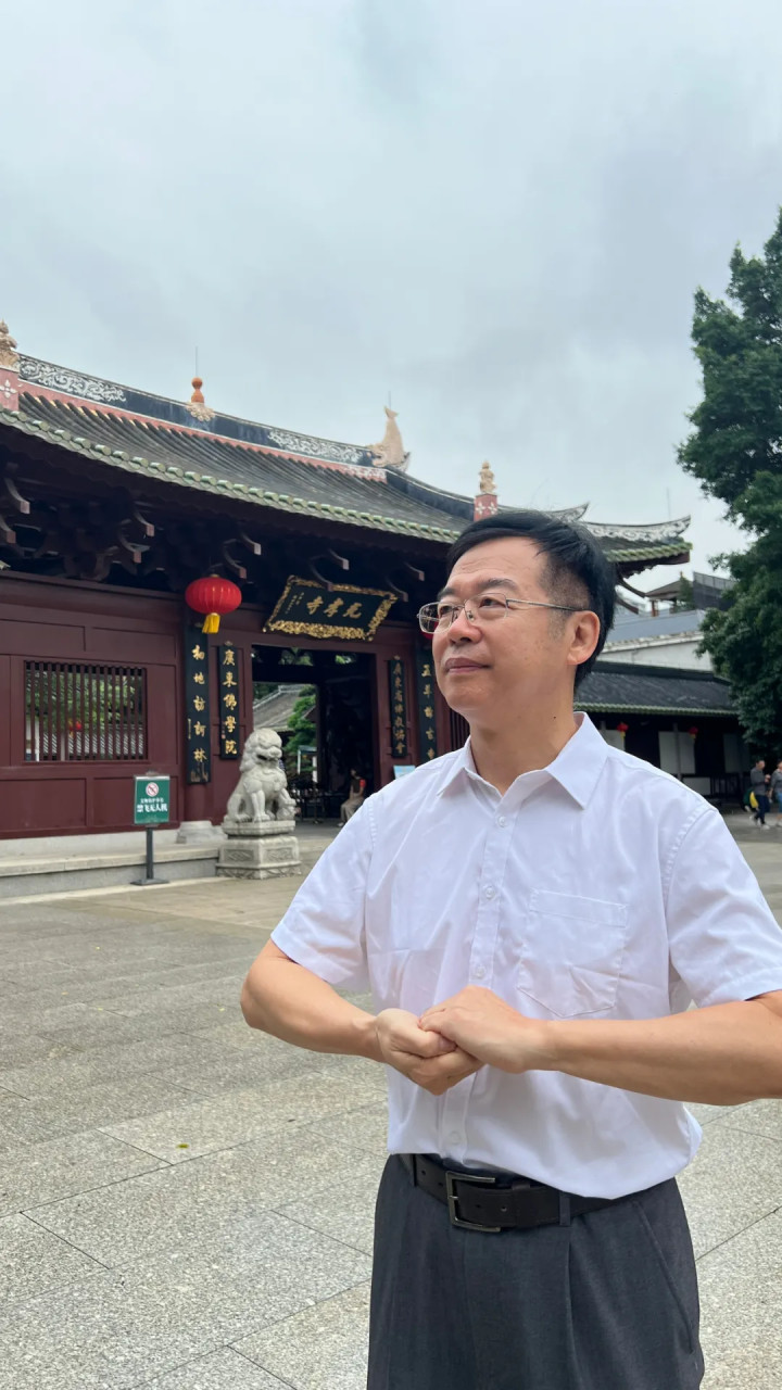 清晨,戴欣明从惠州湖镇镇,罗浮山脚下来到广州光孝寺。他在大殿外的古榕树下录制离火运主题视频时,突然指着地面的青石板说:“你们看,这些石头被香客磨了千年,工业时代我们追求‘把石头磨得更亮’;但今天,AI让我们思考‘石头为什么要被磨’——当物质需求被充分满足,人类必须转向对意义的追问。”