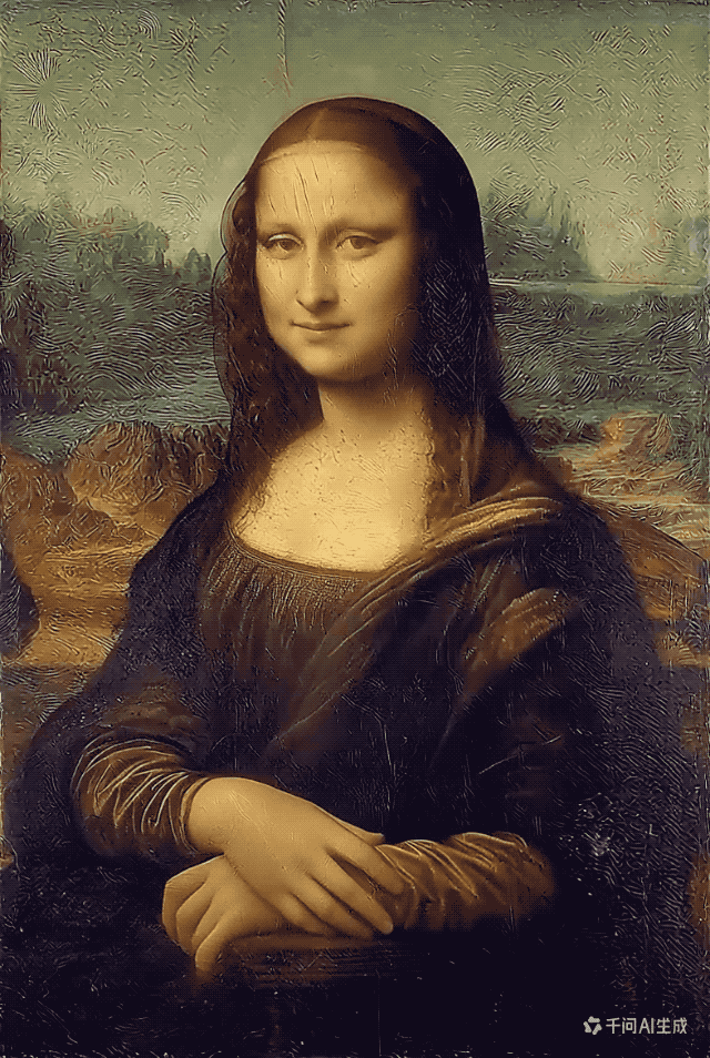 最后,我让在卢浮宫端了 500 年架子的蒙娜丽莎戴上墨镜开唱。魔性歌曲配达芬奇名画, 这组合本身就够行为艺术了。文物活化的另一种打开方式,get 了。