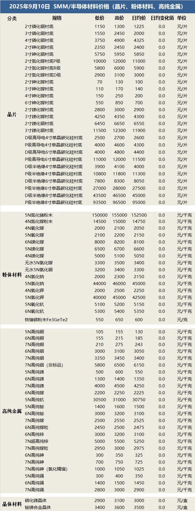 认购返佣金有正规的平台吗9.10:半导体材料价格(晶片、粉体材料、高纯金属)