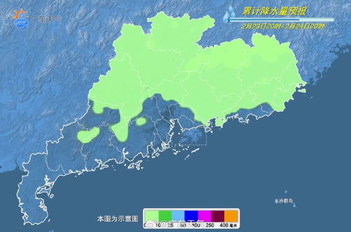 2月23日20时至24日20时累计降水量预报。