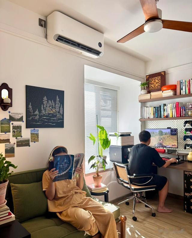 比如,可以搞个书房兼游戏区,放上收纳架、投影仪、折叠沙发,不用临时收拾,随时转变。
